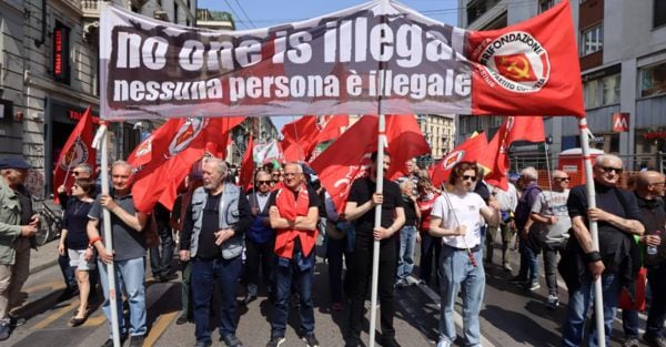 Ascolta la versione audio dell’articoloTensioni a Milano tra antagonisti e forze dell’ordine durante il corteo dei centri sociali contro il raduno dei Patrioti Europei, organizzato dalla Lega, in piazza Duomo. In via Borgogna le forze dell’ordine stanno usando idranti contro i manifestanti, mentre gli antagonisti lanciano petardi, fumogeni, bottiglie contro gli agenti, nel tentativo di forzare il blocco e arrivare in piazza Duomo. Dopo le tensioni con le forze dell’ordine in via Borgogna, i manifestanti del corteo antagonista contro il raduno della Lega hanno arretrato, imboccando via Visconti di Modrone e riprendendo il percorso autorizzato. Dal corteo si alzano i cori “servi dello Stato” e “fuori i fascisti da Milano”.Tre cortei antagonistiContro il raduno dei Patrioti sono stati organizzati tre cortei, che si sono ricongiunti all’altezza del Palazzo di Giustizia, in corso di Porta Vittoria, a Milano. A unirsi sono stati il corteo dei centri sociali partito da piazza Tricolore, quello promosso da associazioni e partiti partito da piazza Lima con lo slogan “Milano è migrante”, e la manifestazione delle realtà filo palestinesi partita da piazza Argentina.Loading…Il corteo organizzato contro il raduno dei Patrioti europei in programma in piazza Duomo di Milano, 18 aprile 2026. ANSA/Paolo SalmoiragoDopo una breve trattativa con la Polizia, al corteo contro l’evento dei Patrioti è stato concesso di proseguire lungo corso Buenos Aires fino a piazza Oberdan senza girare per viale Regina Giovanna come inizialmente previsto. All’incrocio dove il corteo avrebbe dovuto deviare, i giovani attivisti del Cantiere hanno scritto con la vernice sull’asfalto “Milano è migrante”, intonando poi cori come ’siamo tutti antifascisti’. Le forze dell’ordine avevano posizionato delle transenne per impedire al corteo di raggiungere piazza Oberdan, che sono poi state rimosse permettendo ai manifestanti di avanzare verso la zona da cui era partito il corteo dei Patrioti diretto verso piazza Duomo. Tra due semafori al’incrocio con viale Majno è stato posizionato anche uno striscione con la scritta “Milano è migrante e partigiana”. Tra i presenti alla manifestazione anche il consigliere regionale Luca Paladini con la maglietta dei Sentinelli.Comizio di Salvini in piazza DuomoMatteo Salvini ha iniziato il comizio in piazza Duomo per l’evento dei Patrioti europei ricordando Giacomo Bongiorni, l’uomo che è morto a Massa dopo una lite con due ragazzi in cui è stato picchiato. E poi aggiunge: “Ricordiamo colui che la nostra grande Lega l’ha fondata, il pensiero va al nostro Umberto Bossi, grazie a chi lo ha ricordato e lo ricorderà per sempre”. Dalla folla si è alzato il coro ’Bossi, Bossi’.